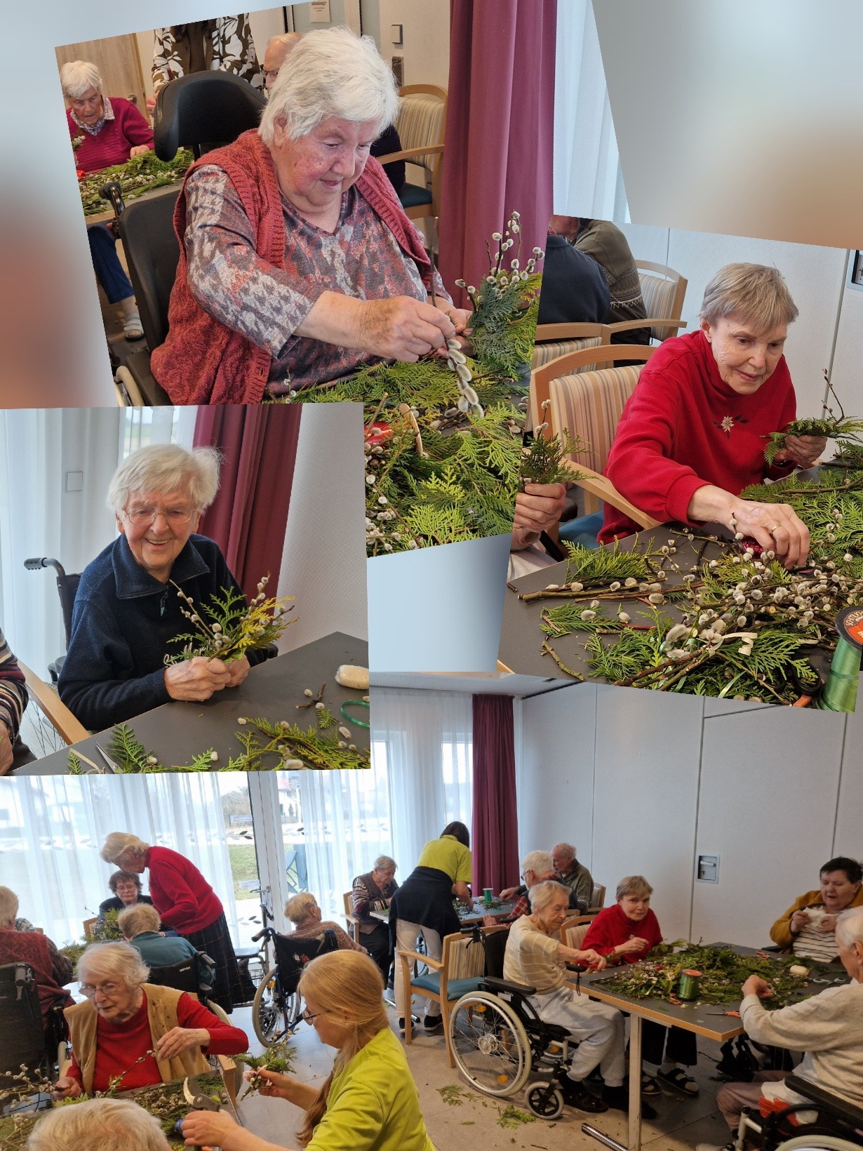 Das Binden der Palmbuschen bietet eine schöne Gelegenheit, bei der sich Bewohner und unsere ehrenamtliche Mitarbeiter austauschen können und Erinnerungen an früher wieder lebendig werden.